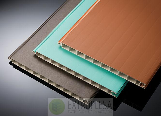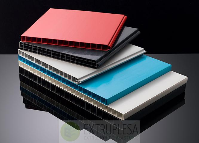 Nous fabriquons des panneaux en PVC extrudé dans de nombreux formats. Voici les plus fréquents : 250 x 20 mm, 100 x 35 mm, 200 x 35 mm, 500 x 35 mm, 700 x 35 mm, 800 x 35 mm, 200 x 50 mm, 500 x 50 mm y 800 x 50 mm.